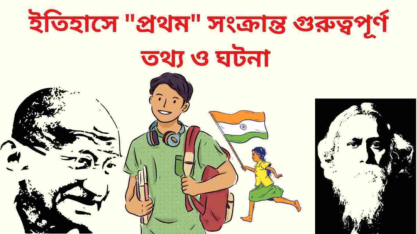 ইতিহাসে "প্রথম সংগঠিত" বা "প্রথম সংক্রান্ত" যেকোন ঘটনাই গুরুত্বপূর্ণ তথ্য হিসেবে বিবেচিত হয়। প্রথম সংগঠিত যেকোন ঘটনা বা তথ্য থেকে পরীক্ষায় সবথেকে বেশি প্রশ্ন এসে থাকে। মাধ্যমিক ইতিহাসে প্রথম সংক্রান্ত অসংখ্য ঘটনা বা তথ্যকে সংকলিত করে আজকের পর্বটিকে সাজানো হয়েছে।